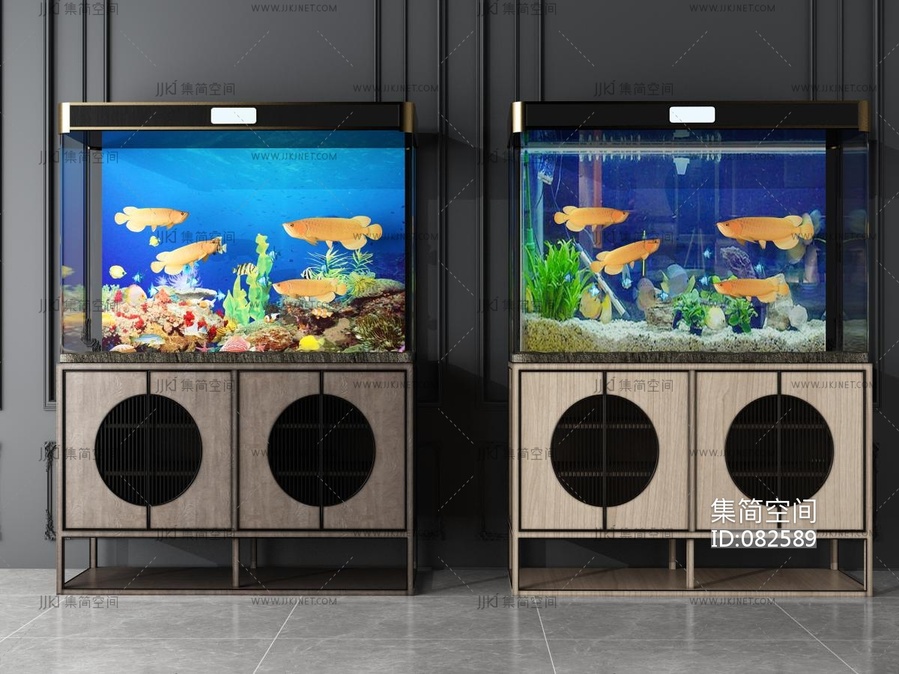 新中式鱼缸,银龙鱼 3d模型下载 [模型ID:82589]