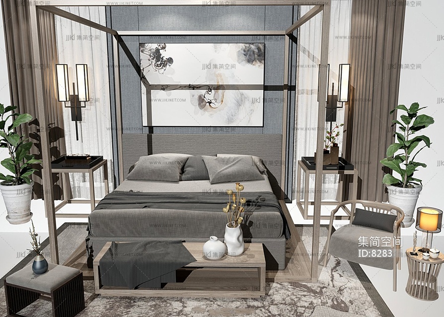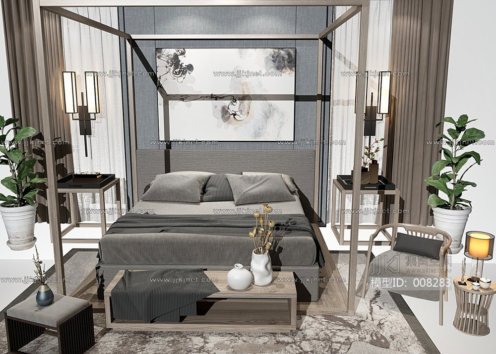 10-1024新中式木架子床 3d模型下载 [模型ID:8283]