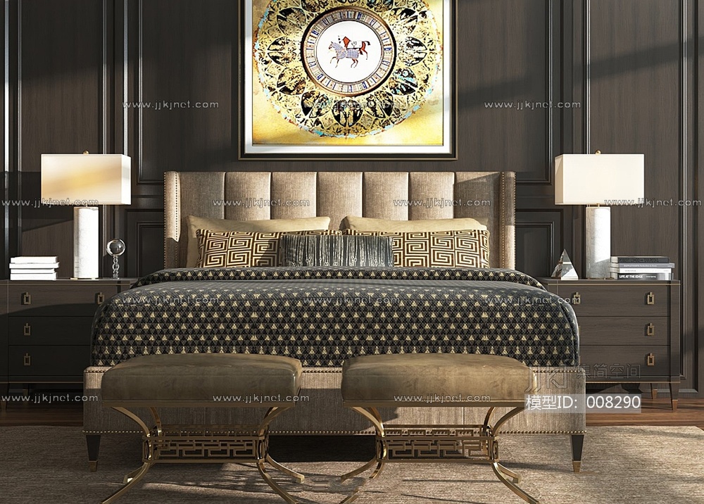 17-1024简欧床 3d模型下载 [模型ID:8290]