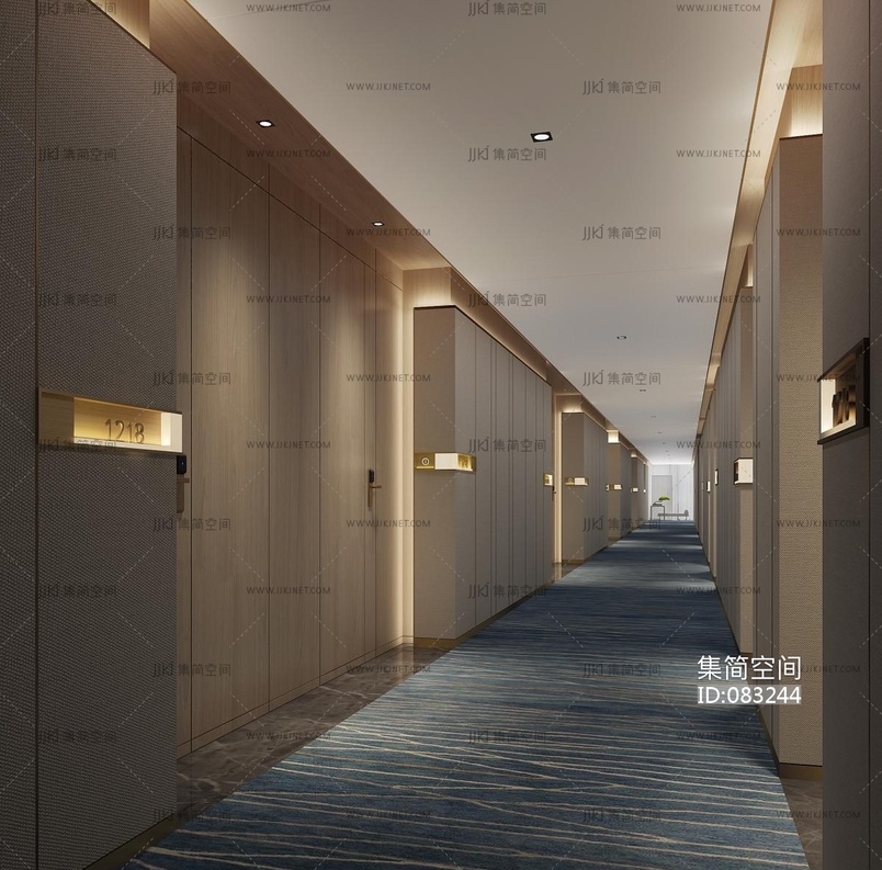 现代新中式酒店客房走廊,过道 3d模型下载 [模型ID:83244]