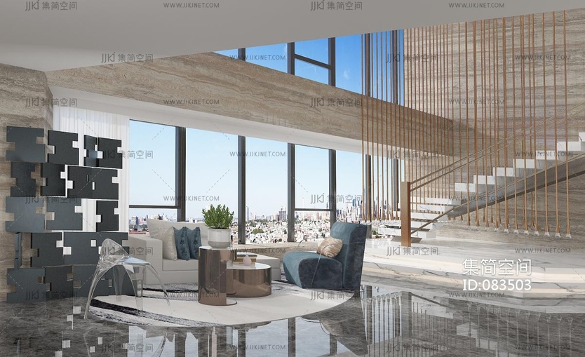 现代楼梯间沙发区等候区 3d模型下载 [模型ID:83503]