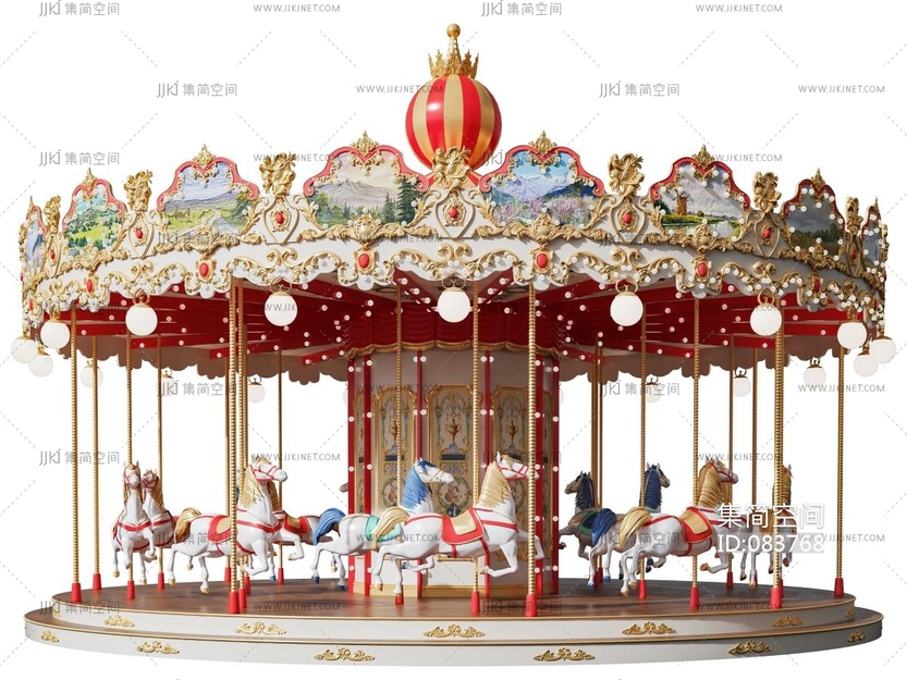 欧式旋转木马,儿童游乐场设施 3d模型下载 [模型ID:83768]