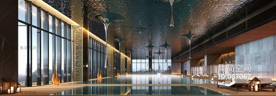 08现代酒店游泳馆,泳池,户外躺椅, 3d模型下载 [模型ID:87067]