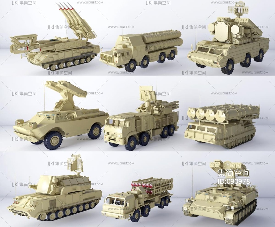 现代军事装甲车,导弹,坦克军事武器 3d模型下载 [模型ID:90978]