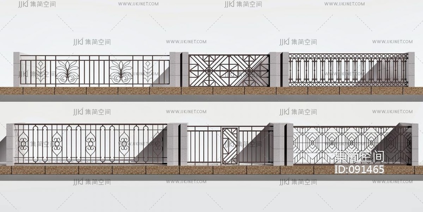 现代铁艺围墙院墙 3d模型下载 [模型ID:91465]