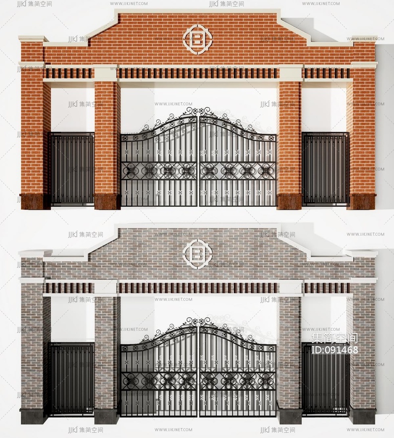 简欧砖墙铁艺大门 3d模型下载 [模型ID:91468]