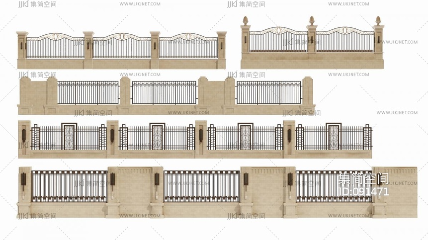 欧式铁艺围墙围栏, 3d模型下载 [模型ID:91471]