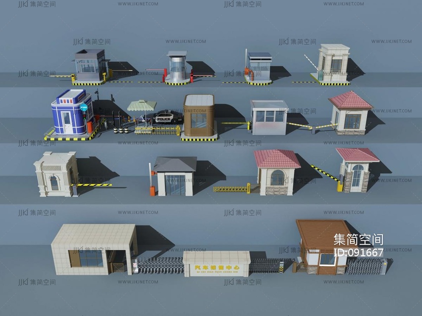 现代门卫保安室建筑外观,收费道闸 3d模型下载 [模型ID:91667]