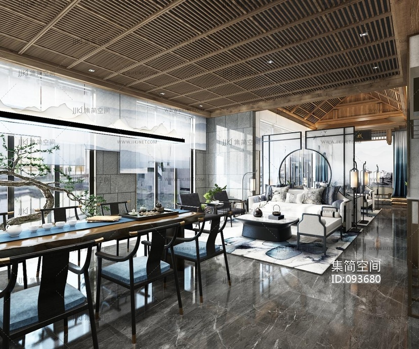 新中式,洽谈区,客厅茶桌椅,沙发 3d模型下载 [模型ID:93680]