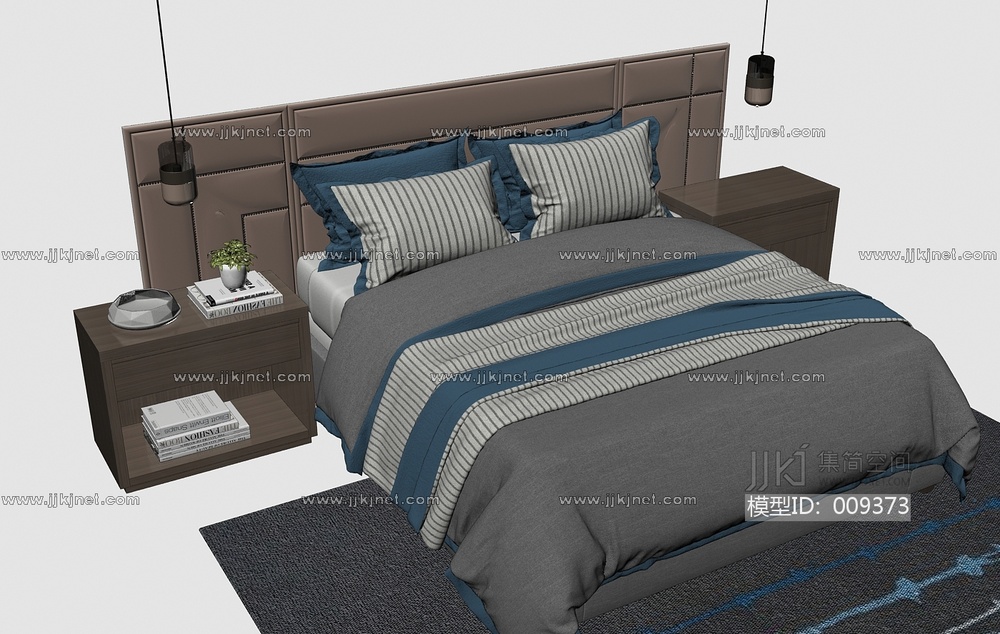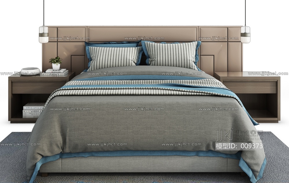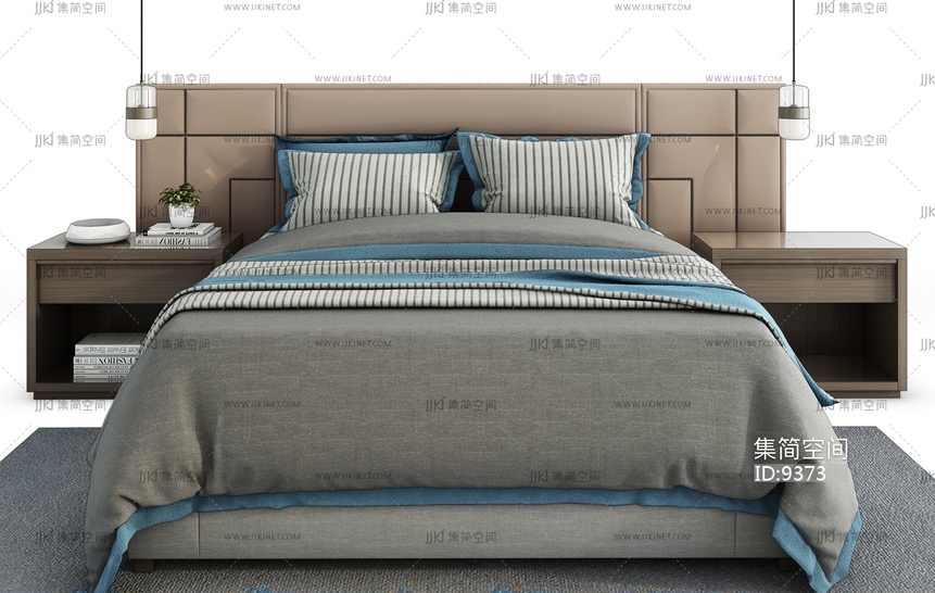 H08-0911新中式床组合 3d模型下载 [模型ID:9373]