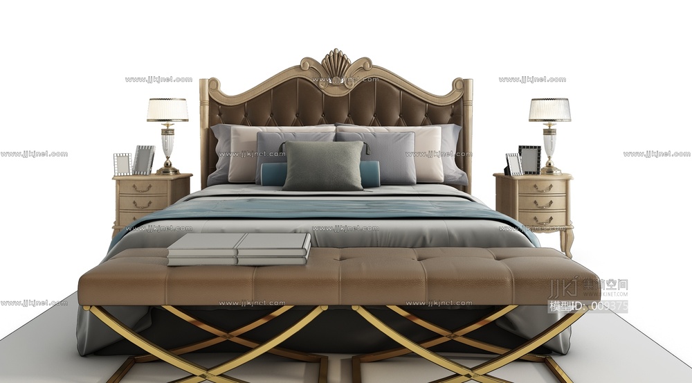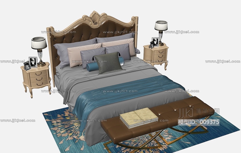 H12-0906新中式床组合 3d模型下载 [模型ID:9375]