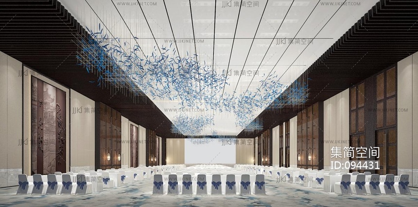新中式酒店多功能厅 3d模型下载 [模型ID:94431]