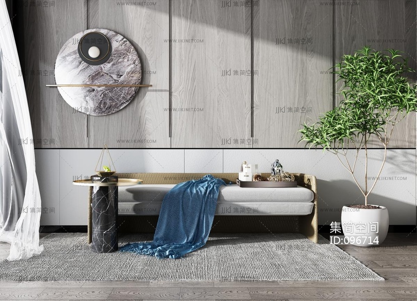 现代布艺床尾凳,角几,绿植盆栽,饰品摆件 3d模型下载 [模型ID:96714]