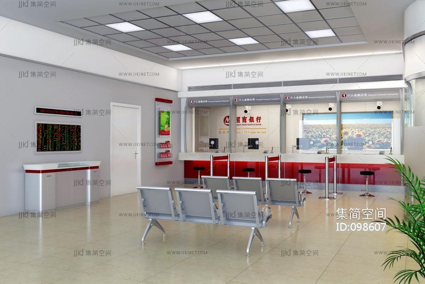 现代银行服务大厅 3d模型下载 [模型ID:98607]