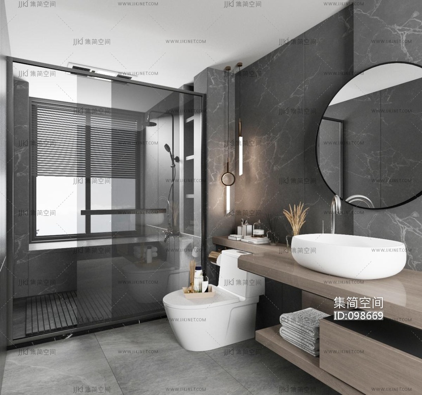 现代酒店卫生间 3d模型下载 [模型ID:98669]