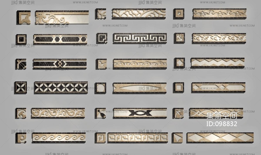 中式大理石雕花波打线,圈边 3d模型下载 [模型ID:98832]