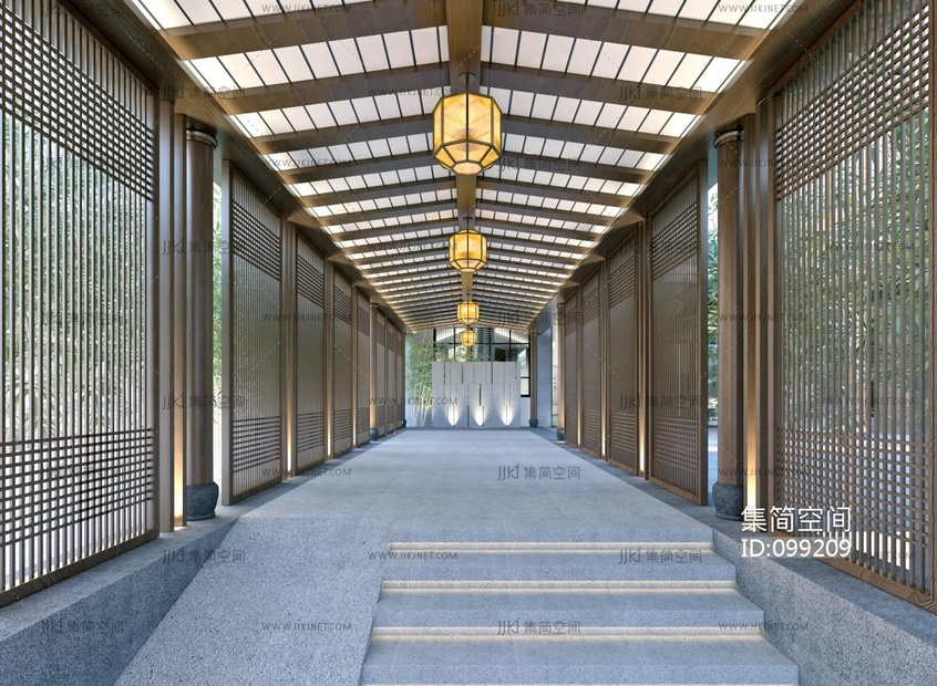 新中式轻奢酒店会所走廊, 3d模型下载 [模型ID:99209]