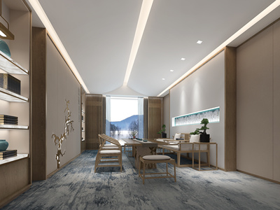 现代茶室书房,茶桌椅,茶台