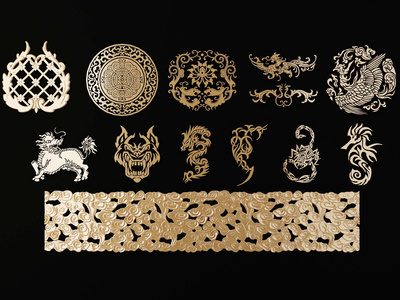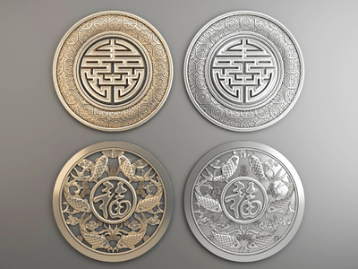 中式圆形鲤鱼民族,福字,寿字纹图案雕花