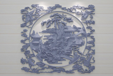 中式山水,雕花,浮雕,木雕,雕花,砖雕