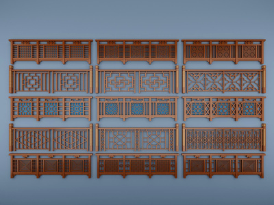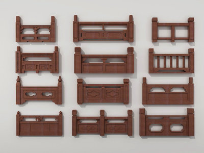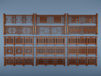 中式实木雕花栏杆,围栏,护栏,扶手,