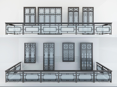 新中式栏杆,玻璃扶手,窗户,护栏,花格,花窗,屏风隔断