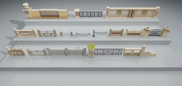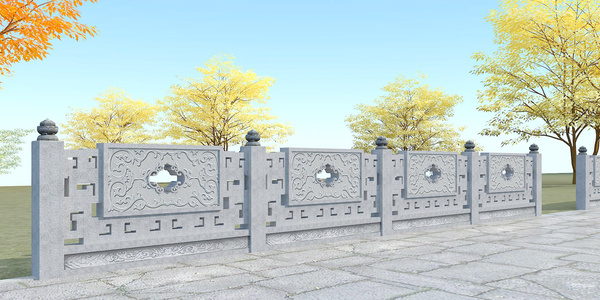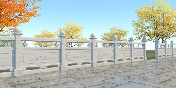 中式石材,玉石,栏杆扶手,护栏,绿植,树