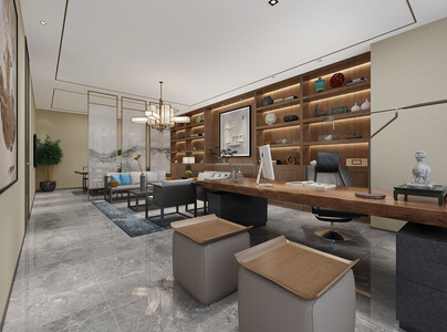 Z02-0505新中式总经理办公室办公桌椅班台沙发茶几书柜屏风