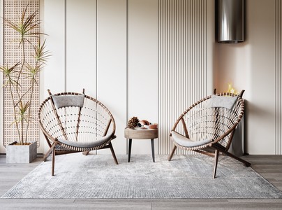 侘寂风休闲椅 边几 绿植 壁炉