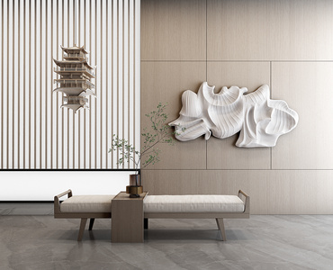 新中式墙面装置艺术品沙发凳,脚凳,床尾踏凳