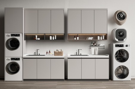 现代阳台洗衣机烘干机橱柜