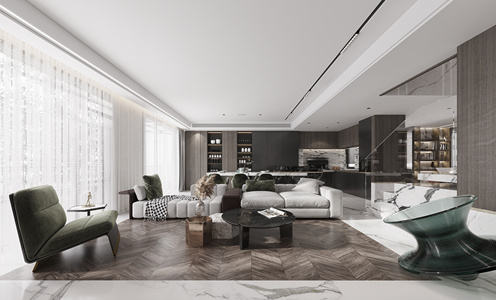 现代客餐厅,沙发,厨房陀螺沙发