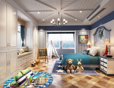 28简欧式现代女儿房,女孩房儿童房公主房双人床卧室衣柜小黄人地毯玩具