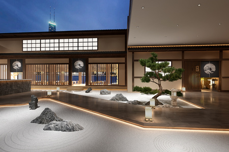 景观庭院中庭,枯山水,景观松树,庭院石灯