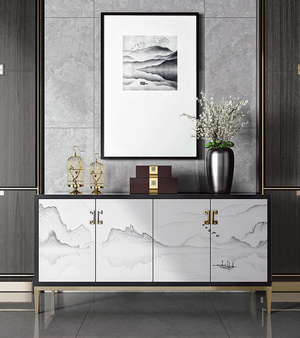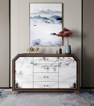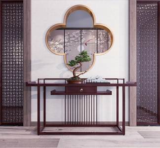 68新中式玄关柜餐边柜摆台花瓶装饰挂画摆件