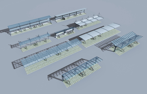 现代钢架玻璃自行车雨棚,遮阳棚