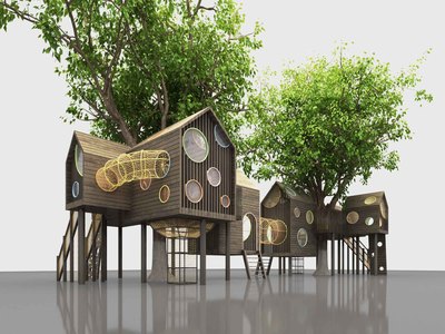 儿童户外游乐场设备,树屋,器材