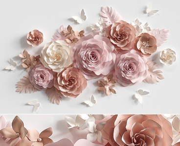现代花艺装饰_花艺花朵花瓣玫瑰花牡丹花墙饰蝴蝶花瓣3D模型