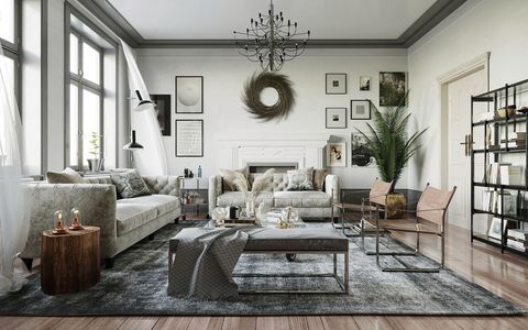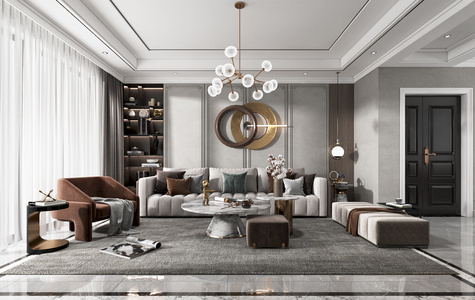 现代客厅餐厅,沙发,餐桌,电视柜,吊灯,装饰画