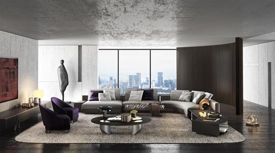 米洛提 Minotti 现代弧形转角客厅,沙发茶几