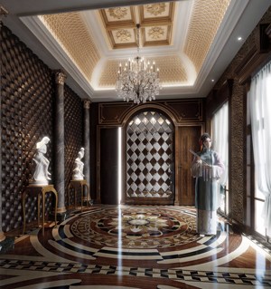 06美式餐厅,餐椅,吊灯,端景台,壁柜