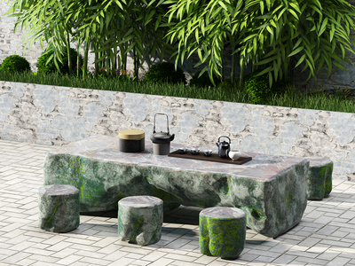 自然风石头茶桌椅