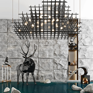 现代金属玻璃吊灯组合