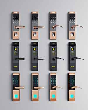 现代指纹锁门把手密码锁,