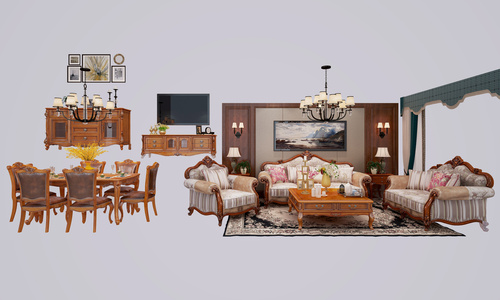 欧式古典雕花沙发,餐桌椅,电视柜组合
