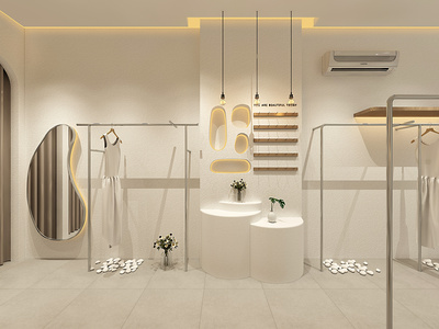 01北欧风服装店服装展架镜子