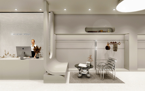现代服装店,接待台专卖店,金属沙发休闲椅茶几