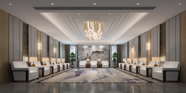 新中式贵宾接待室,沙发水晶吸顶灯