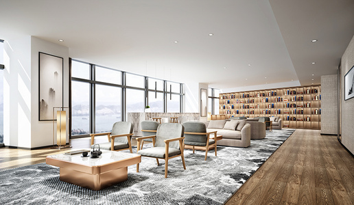 新中式办公休闲区,休闲沙发阅读区