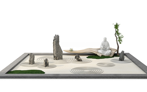 G10-0813中式日式禅意枯山水石头根雕佛像摆件
